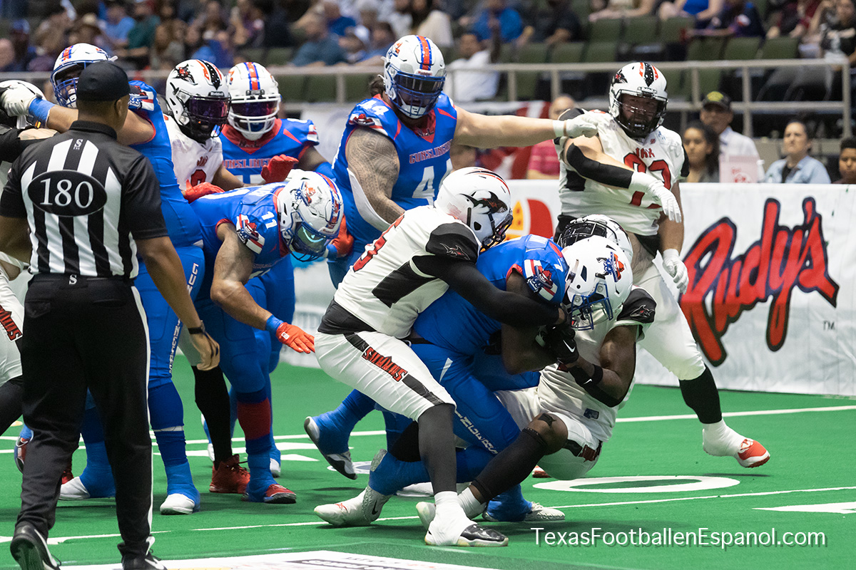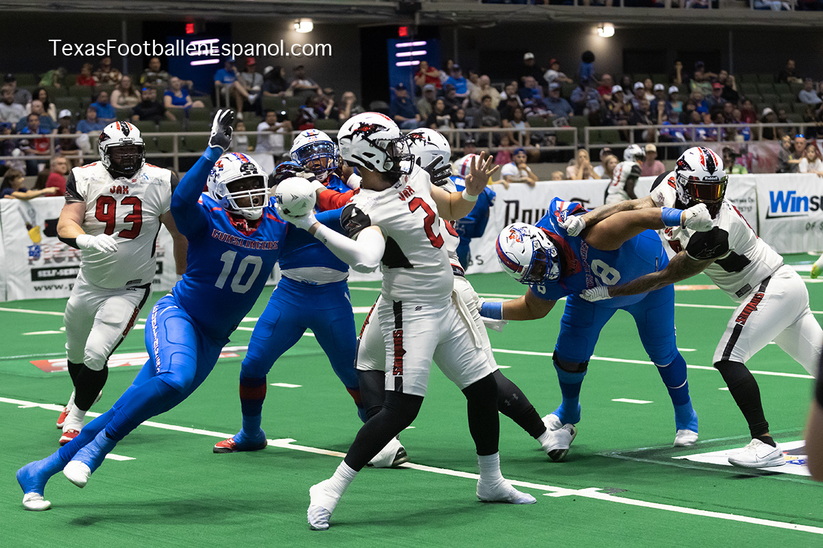 Después de una racha victoriosa de 5 ganados y 0 perdidos los San Antonio Gunslingers mordieron el polvo al caer en una estrepitosa derrota de 74-43 ante los Jacksonville Sharks en casa de los pistoleros de San Antonio, Texas, A pesar de la derrota y perdida de la racha ganadora el equipo se reagrupa para continuar con la 2a parte de la temporada de la National Arena League (NAL) buscando retomar la recha ganadora.