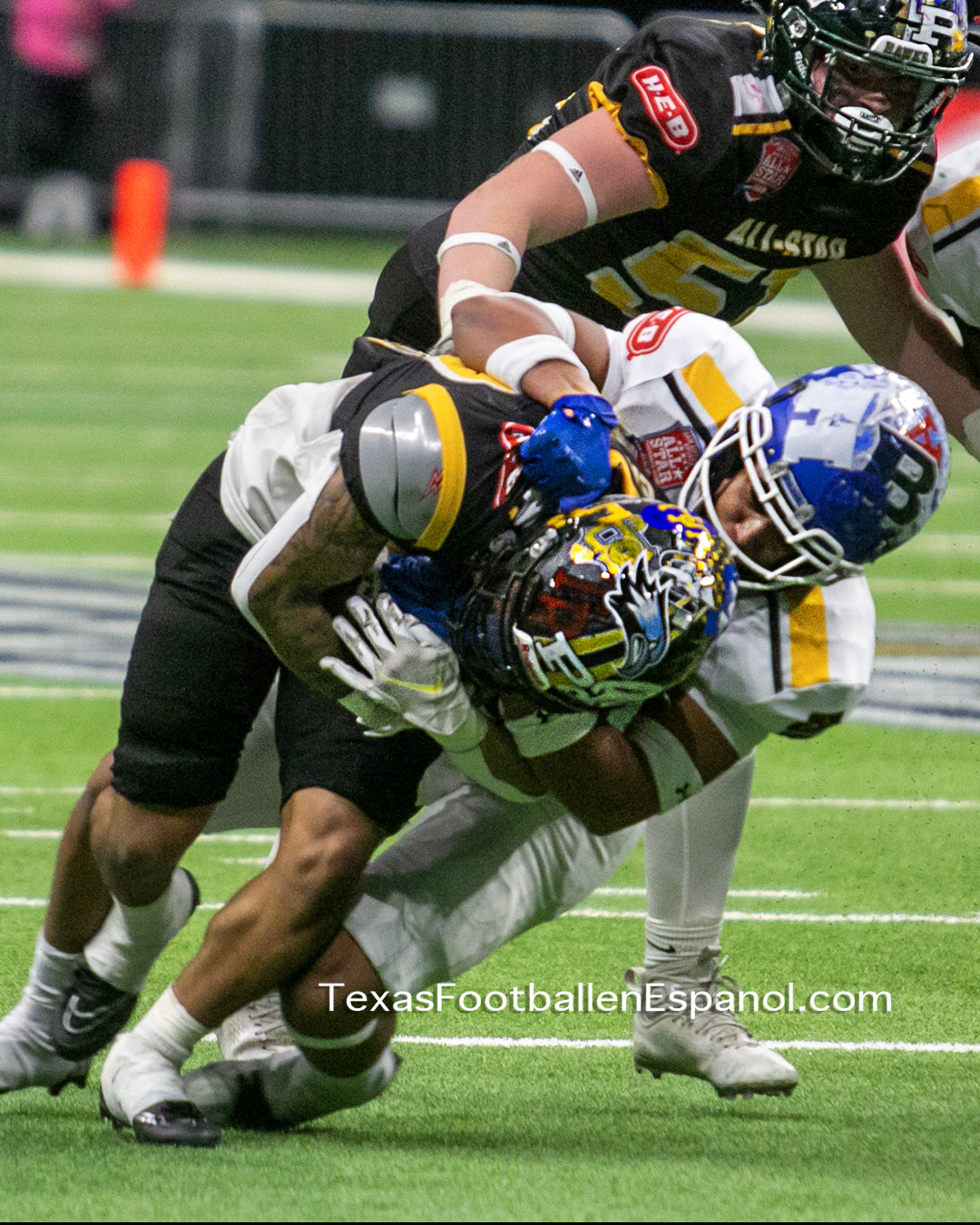 The San Antonio Sports All-Star Football Game is presented by HEB and is televised on CW35 and airs on San Antonio Sports Star ESPN 94.1 FM/1250 AM radio in San Antonio.