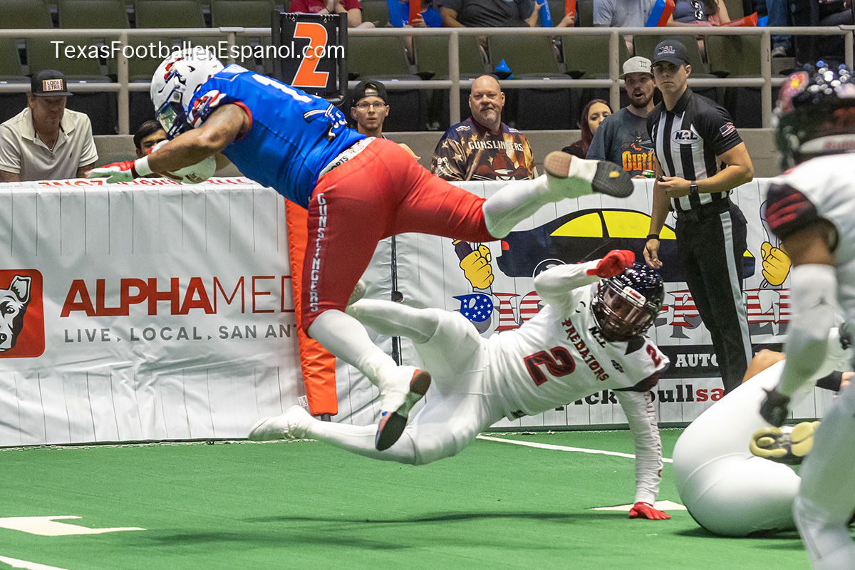 Los Gunslingers vuelven a la senda ganadora después de un tropiezo en casa, esta vez buscaron quién se las pagara y las victimas fueron los Orlando Predators que lucgaron pero al final cayeron 44-33 el domingo anterior en el Freeman Colliseum de San Antonio, Tx, una destacada actuacion del QB Arvell Nelson completando el 69% de sus pases que además nos sorprendió corriendo la bola esta semana, cómo ya nos tiene acostumbrados destacando el multifacético RB y Hombre orquesta Kali Rashaad, bajo la tutela del HC Fred Shaw, quién jugaba como LB en los San Antonio Talons de 2012 a 2014, hablando de los extintos Talons: Cabe destacar que en el roster activo de los Gunslingers se mantiene el Jugador ofensivo y defensivo Pierre Turner, jugador veterano que solidifica el ataue como la defensa del equipo, los Gunslingers mantienen una solida posición número 1 en el standing de la National Arena League (NAL), de continuar así: estamos seguros que podrán alcanzar los playoffs y hasta el campeonato nacional con el apoyo de su gerencia y sus equipos de adquisición de talento y operaciones ademas de todas las personas que colaboran en la organización.