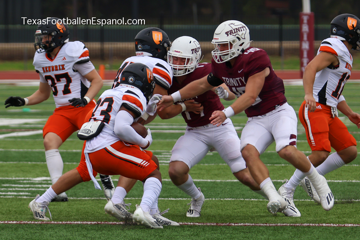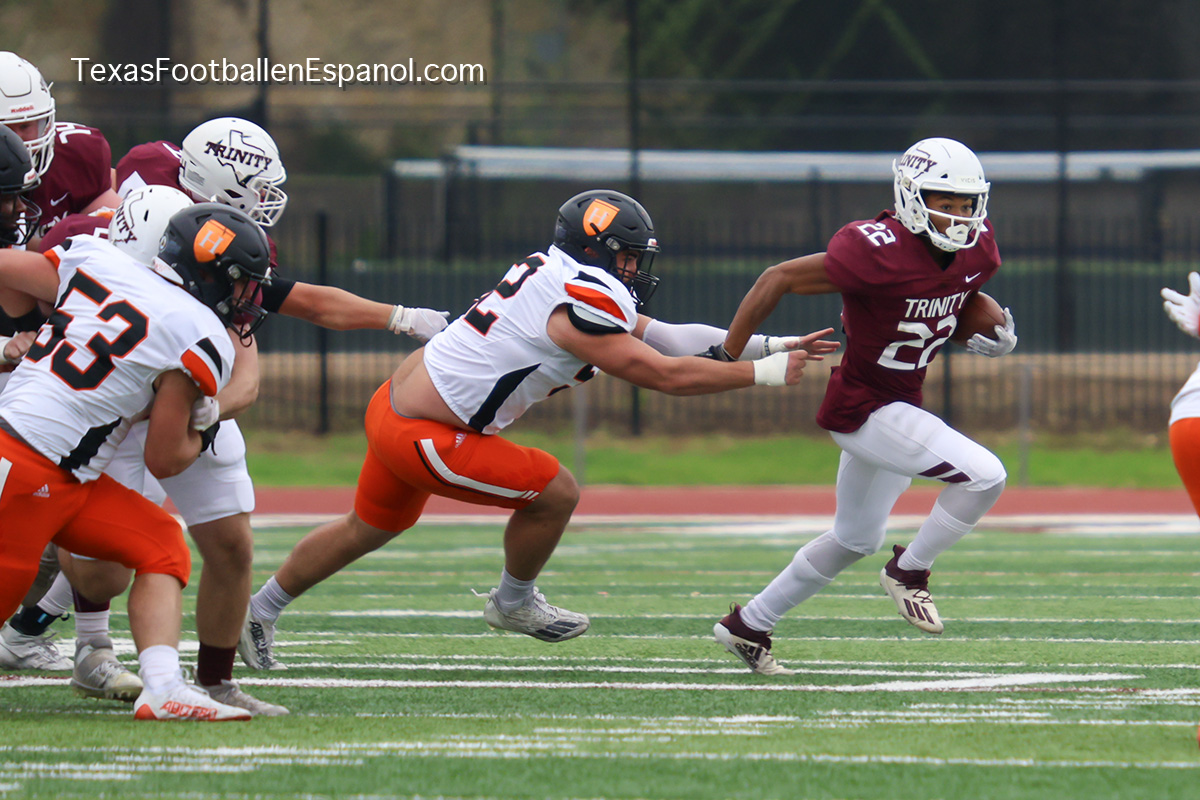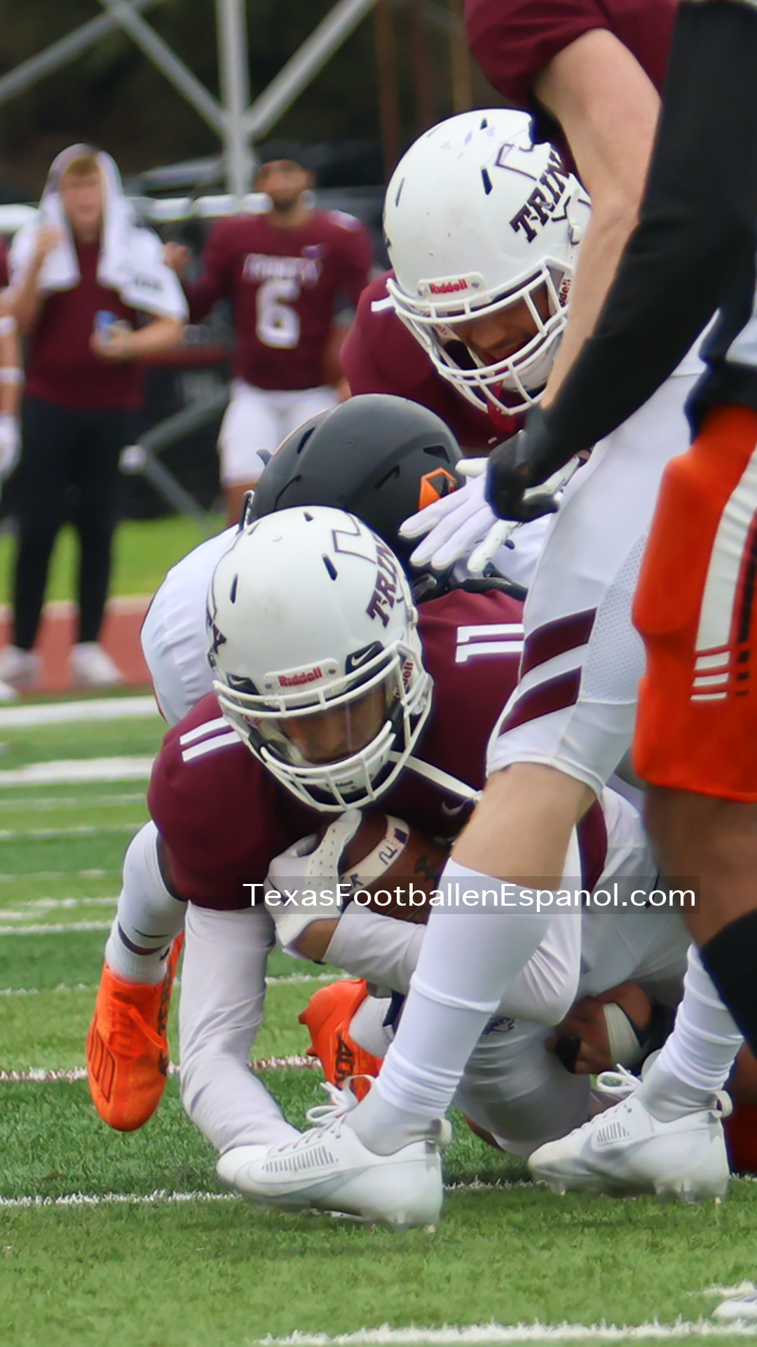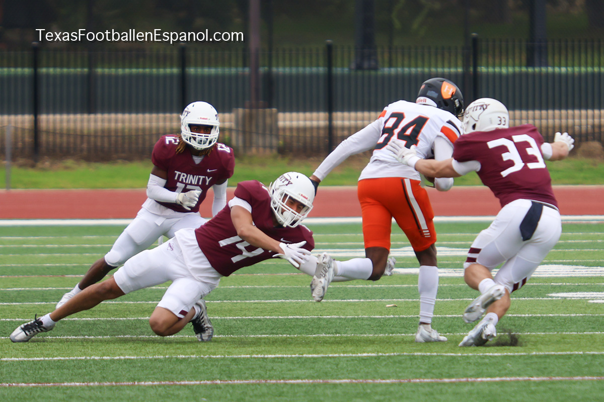 Los Tigers de la Universidad Trinity trminaron otra temporada invictos en la Southern Athletic Asociation (NCAA DIII), de esta manera consiguieron el título absoluto de la conferencia con una victoria 56-7 sobre Hendrix College el sábado por la tarde. Los Tigres ganaron su noveno juego consecutivo para terminar la temporada regular con un récord Over All de 9-1 y una marca de 8-0 en la SAA. Trinity y los Warriors se han enfrentado 7 veces y la marca quedó 5-2 en favor de los Tigers. Trinity acumuló más de 500 yardas de ofensiva en el juego, incluyendo: 328 yardas por aire y 190 yardas por tierra. A pesar del alto total de anotaciones, en realidad fueron la defensa y los equipos especiales los que dominaron el juego de hoy. Los Tigres cedieron poco más de 300 yardas en total, aunque solo 29 de esas yardas por tierra. Trinity también interceptó tres pases en el juego y bloqueó un par de patadas despejes. Los Tigers anotaron 35 de sus 56 puntos solo en el primer cuarto. Hendrix nunca se recuperó y Trinity tomó una ventaja de 42-0 al medio tiempo. Los Tigres rotaron a sus jugadores y aun asi anotaron una vez en el tercero y una vez en el cuarto para tomar una ventaja de 56-0, luego Hendrix pudo evitar el la blanqueada con una anotación tardía en el cuarto cuarto.