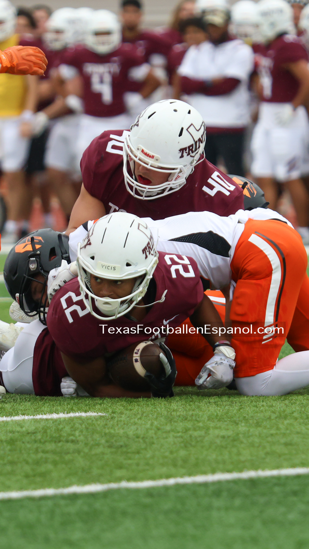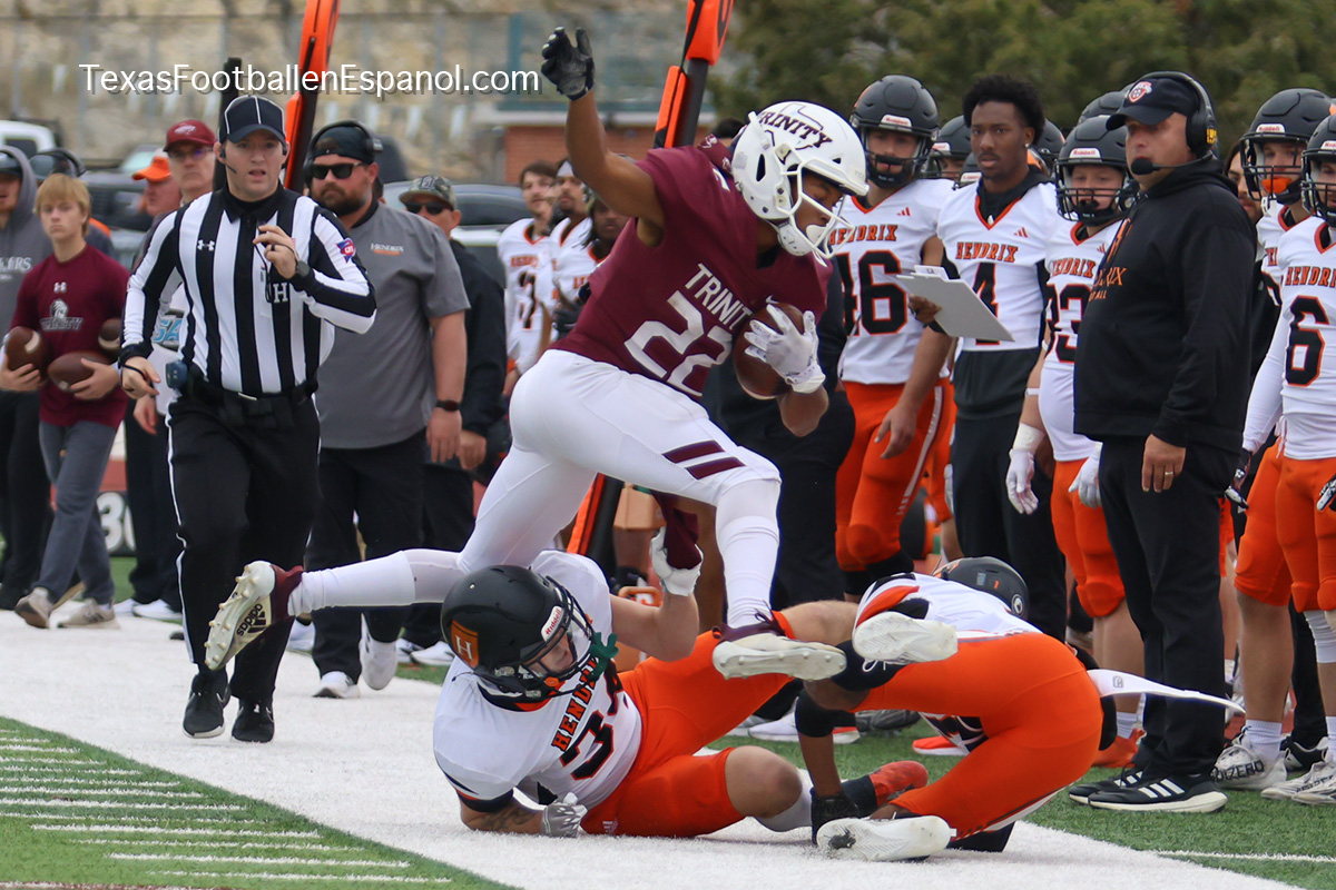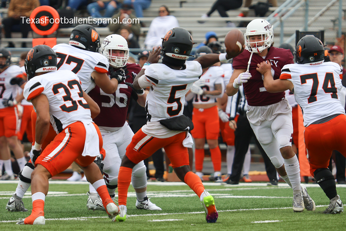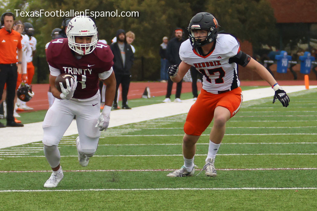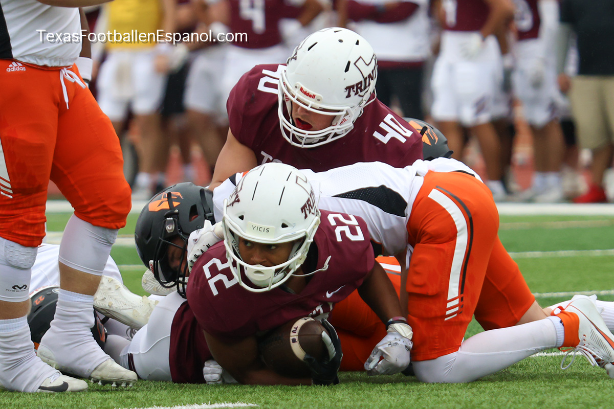 Los Tigers de la Universidad Trinity trminaron otra temporada invictos en la Southern Athletic Asociation (NCAA DIII), de esta manera consiguieron el título absoluto de la conferencia con una victoria 56-7 sobre Hendrix College el sábado por la tarde. Los Tigres ganaron su noveno juego consecutivo para terminar la temporada regular con un récord Over All de 9-1 y una marca de 8-0 en la SAA. Trinity y los Warriors se han enfrentado 7 veces y la marca quedó 5-2 en favor de los Tigers. Trinity acumuló más de 500 yardas de ofensiva en el juego, incluyendo: 328 yardas por aire y 190 yardas por tierra. A pesar del alto total de anotaciones, en realidad fueron la defensa y los equipos especiales los que dominaron el juego de hoy. Los Tigres cedieron poco más de 300 yardas en total, aunque solo 29 de esas yardas por tierra. Trinity también interceptó tres pases en el juego y bloqueó un par de patadas despejes. Los Tigers anotaron 35 de sus 56 puntos solo en el primer cuarto. Hendrix nunca se recuperó y Trinity tomó una ventaja de 42-0 al medio tiempo. Los Tigres rotaron a sus jugadores y aun asi anotaron una vez en el tercero y una vez en el cuarto para tomar una ventaja de 56-0, luego Hendrix pudo evitar el la blanqueada con una anotación tardía en el cuarto cuarto.