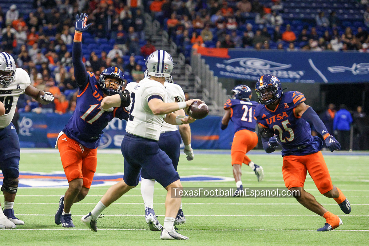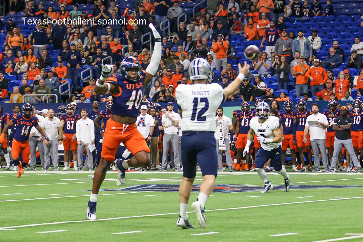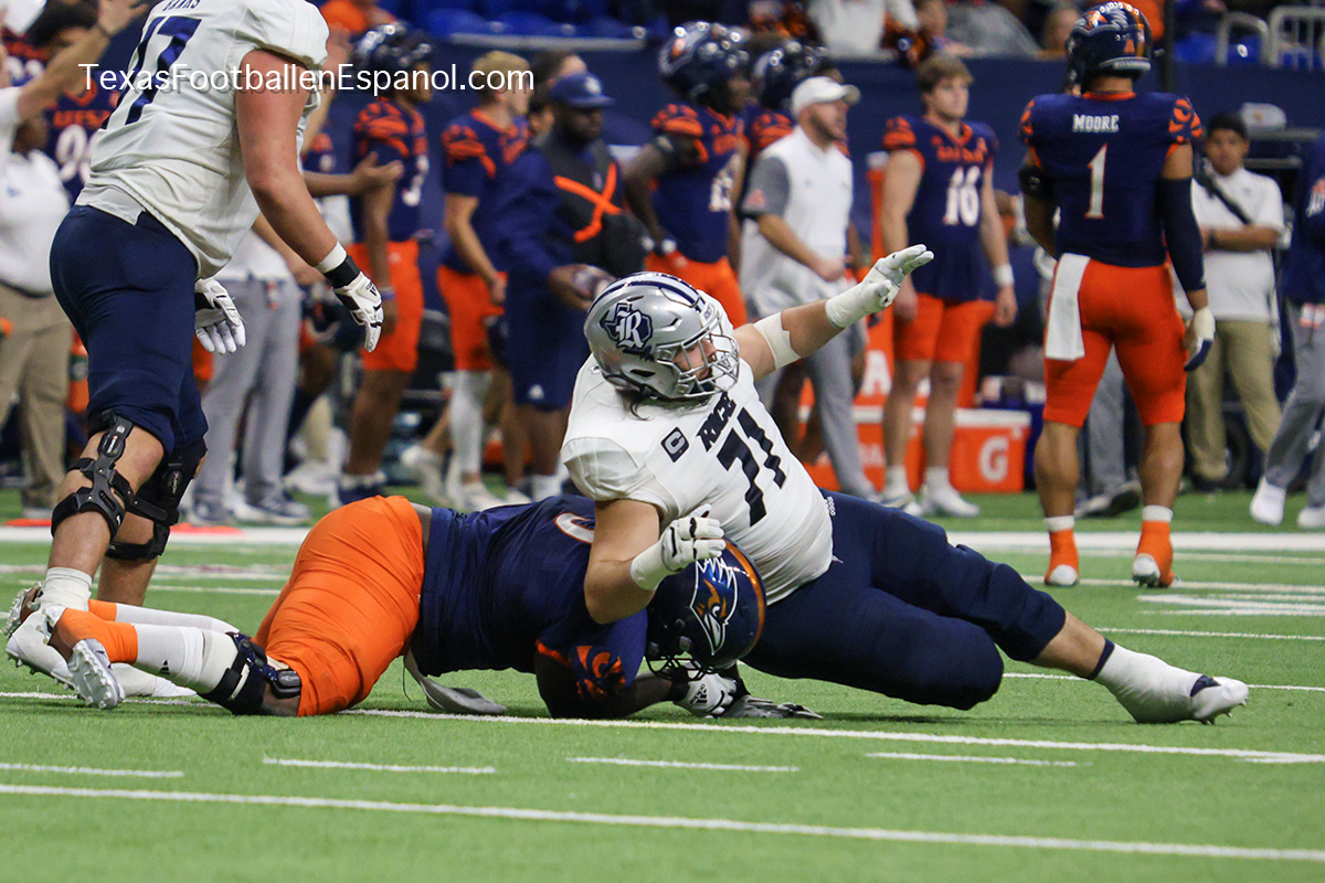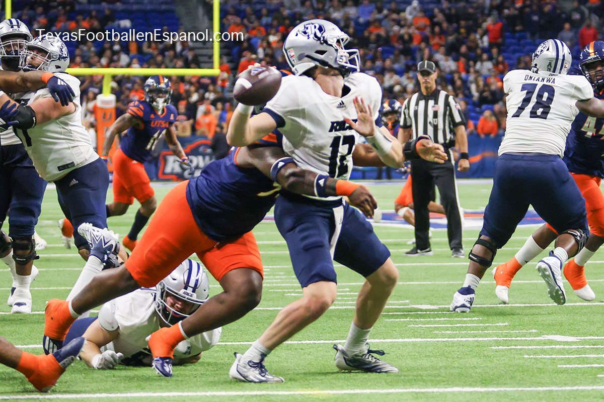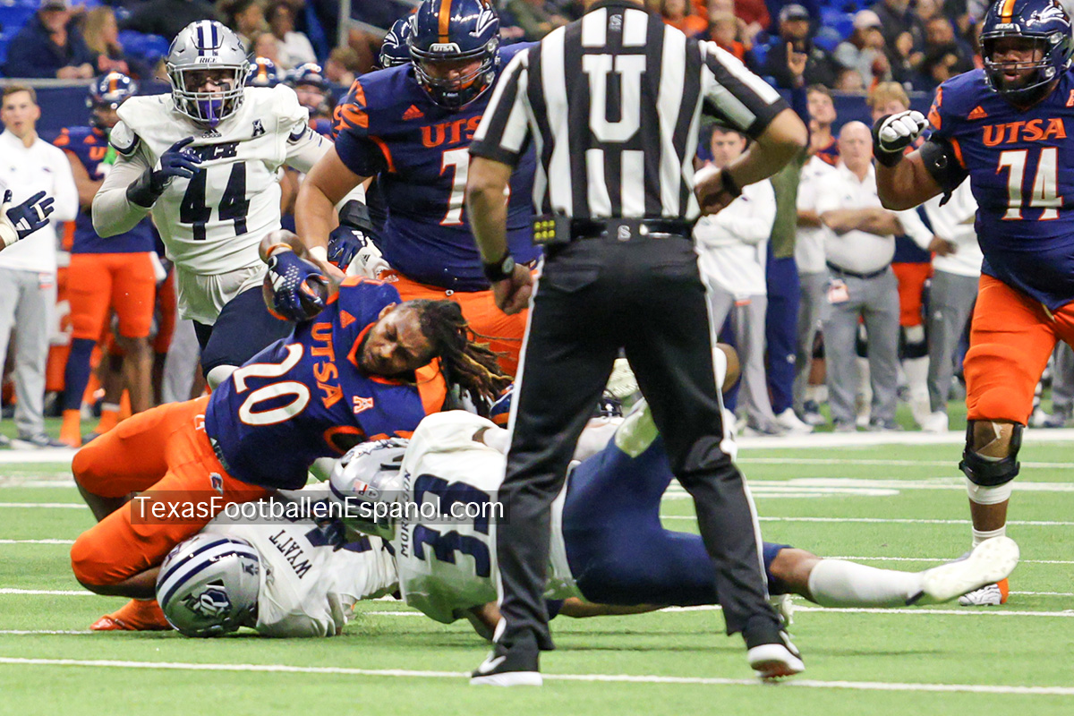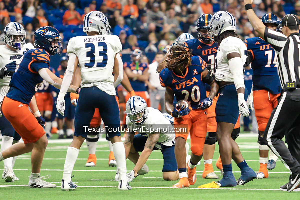 Tarde lluviosa de Sábado en San Antonio, marco perfecto para ver el paso arrasador de los Roadrunners en casa, esta vez la víctima fueron los Rice Owls dejando el Alamodome con una victoria para los Runners de 34-14, lo cual consolida a UTSA como el 3er mejor equipo de la Athletic American Conference, avanzando con paso fuerte hacia el campeonato de la conferencia, cuyos contrincantes se conoceran al final de la temporada despues de que UTSA visite a Tulane (actual lider de la conferencia) en caso de que UTSA llegue a la final, esta seria la 3a temporada consecutiva en que los Roadrunners juegan una final de conferencia.