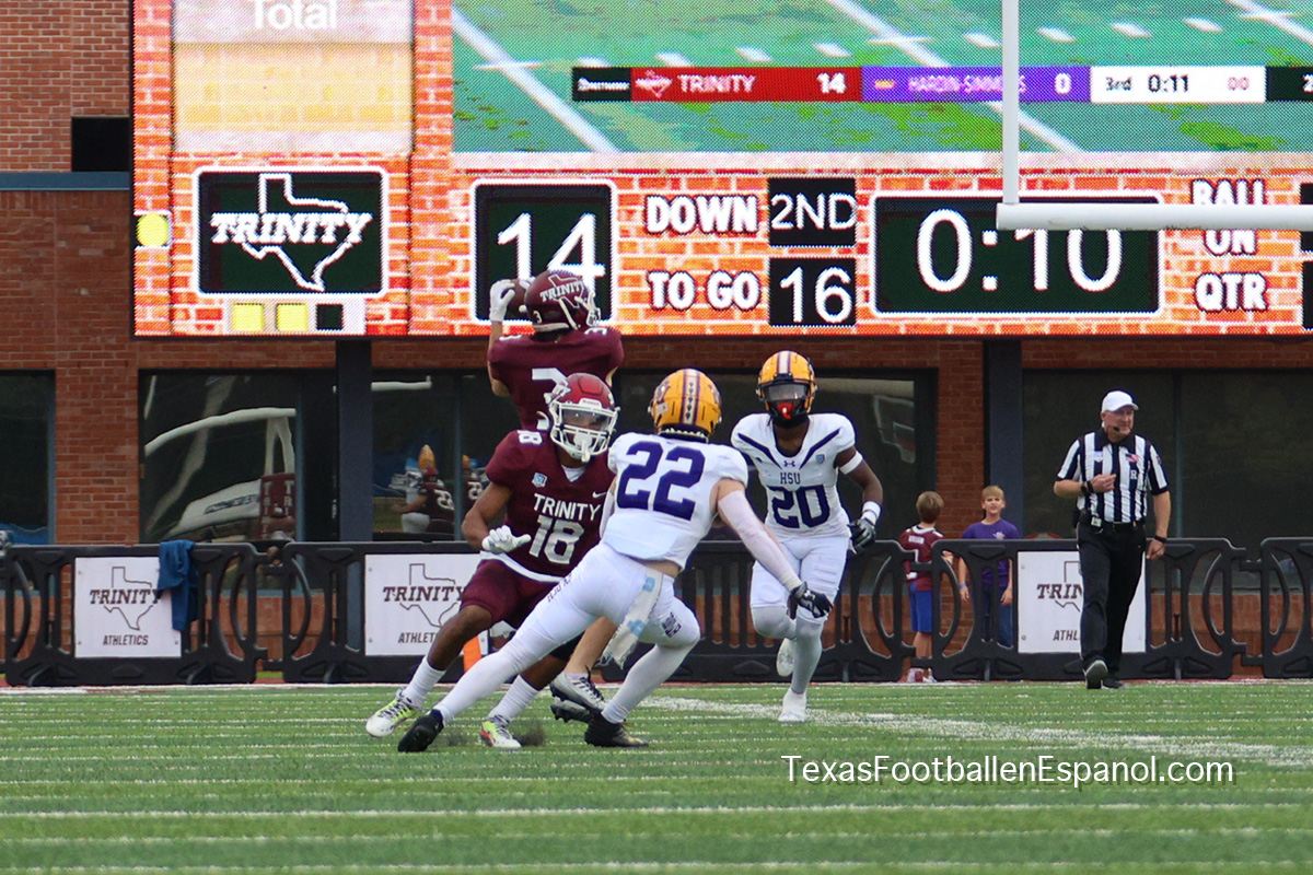 Trinity acumuló 381 yardas de ofensiva en el juego, incluyendo: 300 yardas por aire y 81 yardas por tierra.