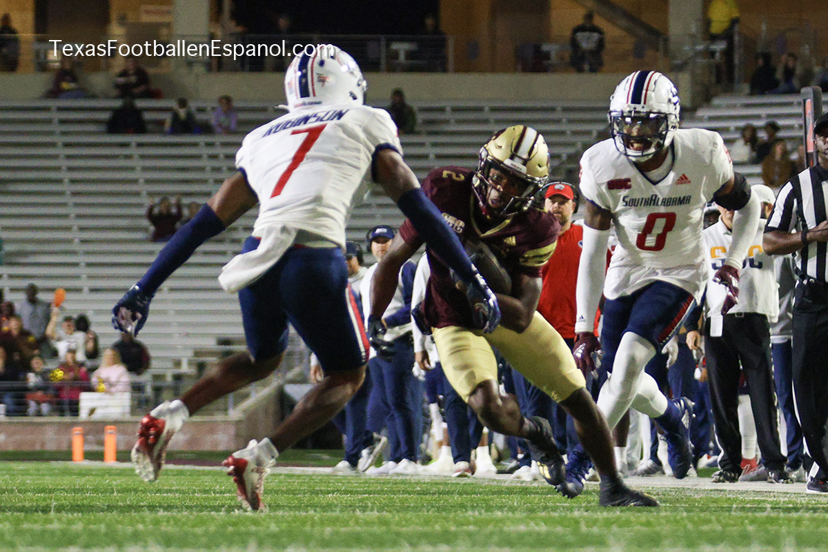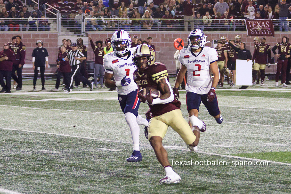 Lo que inicialmente parecía un juego sencillo para TXST, se convirtió en una pelea callejera donde ambos equipos anotaban sin parar, gracias al ajuste de South Alabama cambiando al QB, sacando a Carter Bradley jersey num 2 ingresando el QB Desmond Trotter jersey num 1 quién trajó un mayor dinamismo, y consistencia en el ataque combinado, llevando a su equipo a acaercarse de manera muy peligrosa y con la posibilidad de empatar el partido.