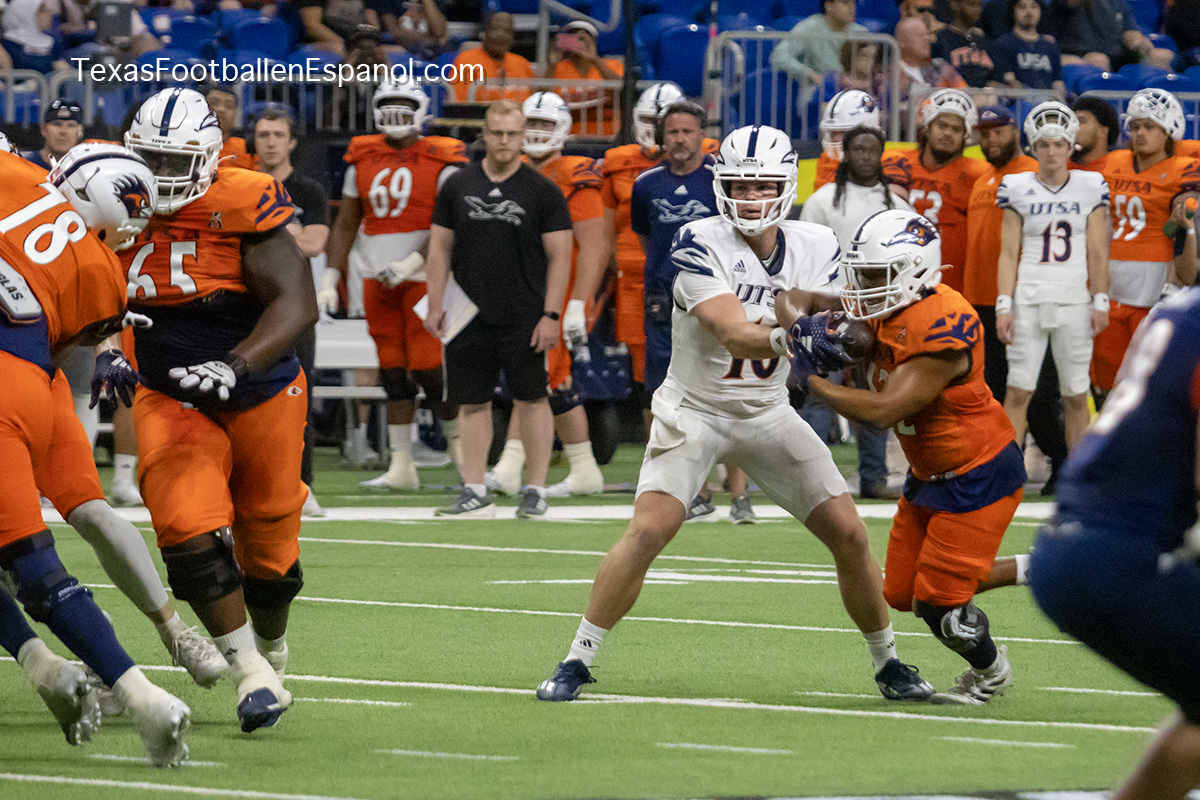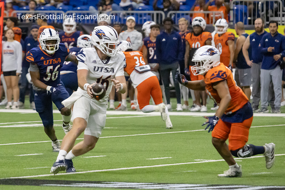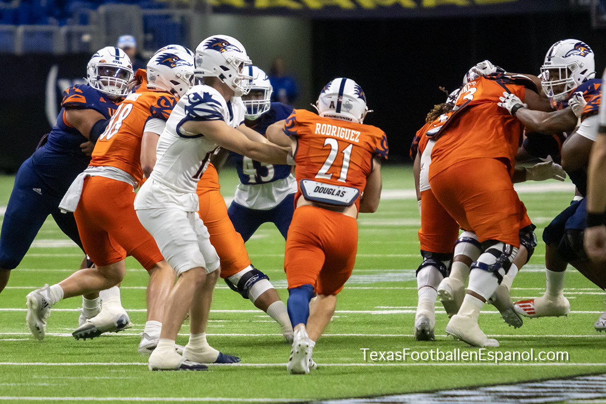 Definitivamente la posición de QB está cubierta completamente con el novato Jackson Gilkey, el oriundo de Ennis Tx tuvo una buena tarde, conectando pases de buena profundidad y sobre todo con mucha