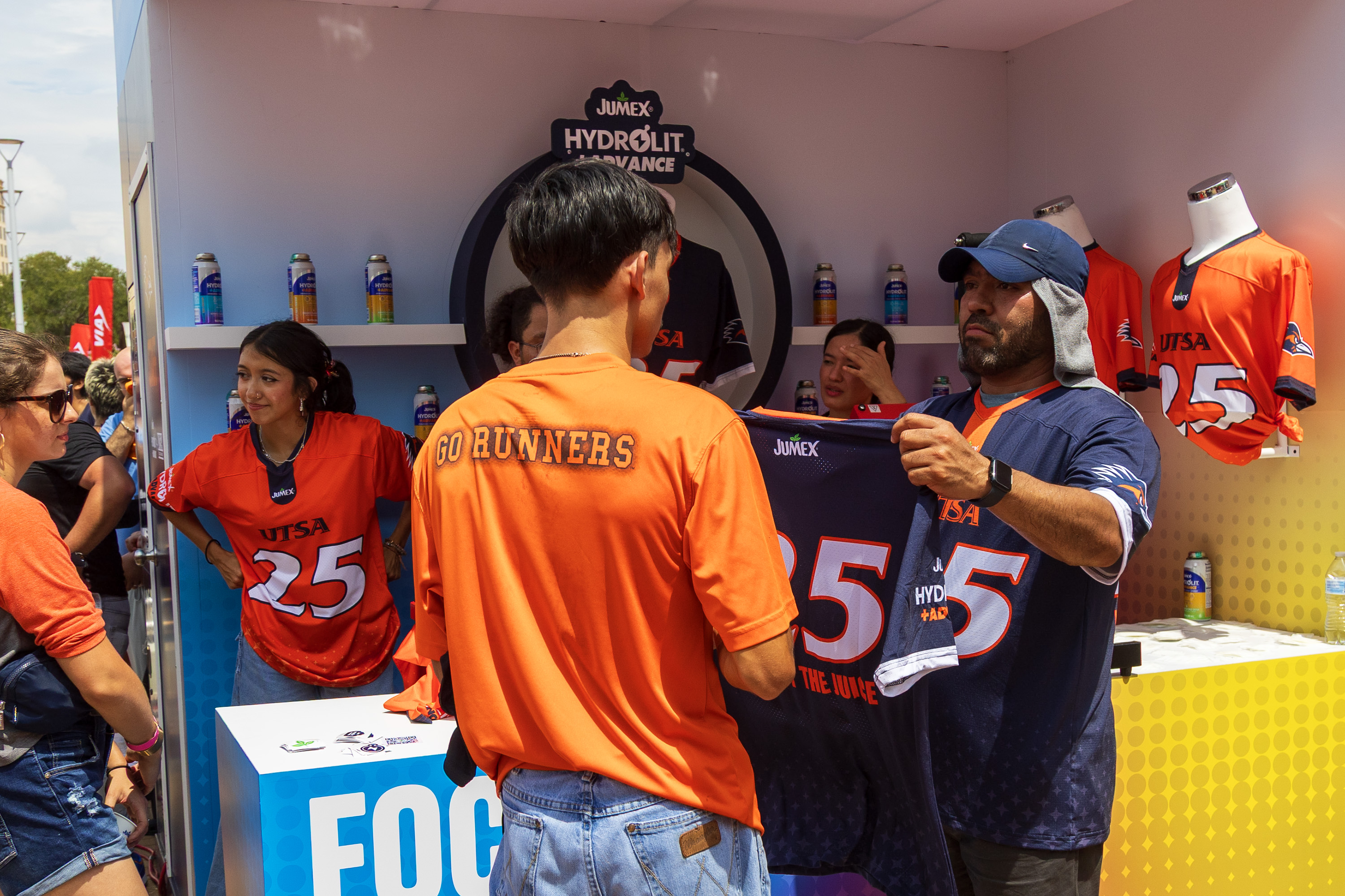 Jumex inicio esta colaboración a lo grande durante el partido inaugural de UTSA en casa en el Alamodome el 6 de septiembre contra la Universidad de Texas State. Los fanáticos disfrutaron una enorme activaciones de la marca que incluia cabinas de muestreo de productos y experiencias en el portón trasero donde experimentaron la diferencia de hidratación de Jumex Hydrolit +Advance de primera mano y ganaron Jerseys de UTSA personalizados.