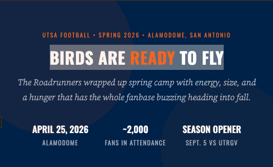 When UTSA kicks off at the Alamodome against UTRGV on September 5th, they will do so as a program entering its seventh season under Traylor and its fourth in the American Athletic Conference — a program that has made the postseason six straight times and built one of the fiercest home-court advantages in non-power football with a 33-5 home record under Traylor’s watch. What this spring showed is that the Roadrunners aren’t just maintaining that standard — they’re pushing past it. The roster has grown in every direction that matters. The urgency in every rep tells you these players are not satisfied. And a fanbase with 2,000 people at a free spring scrimmage tells you that neither is San Antonio.