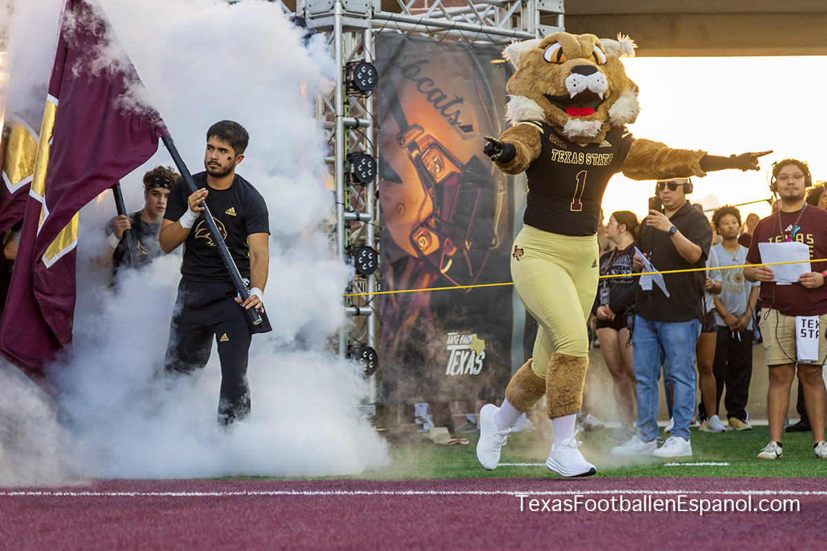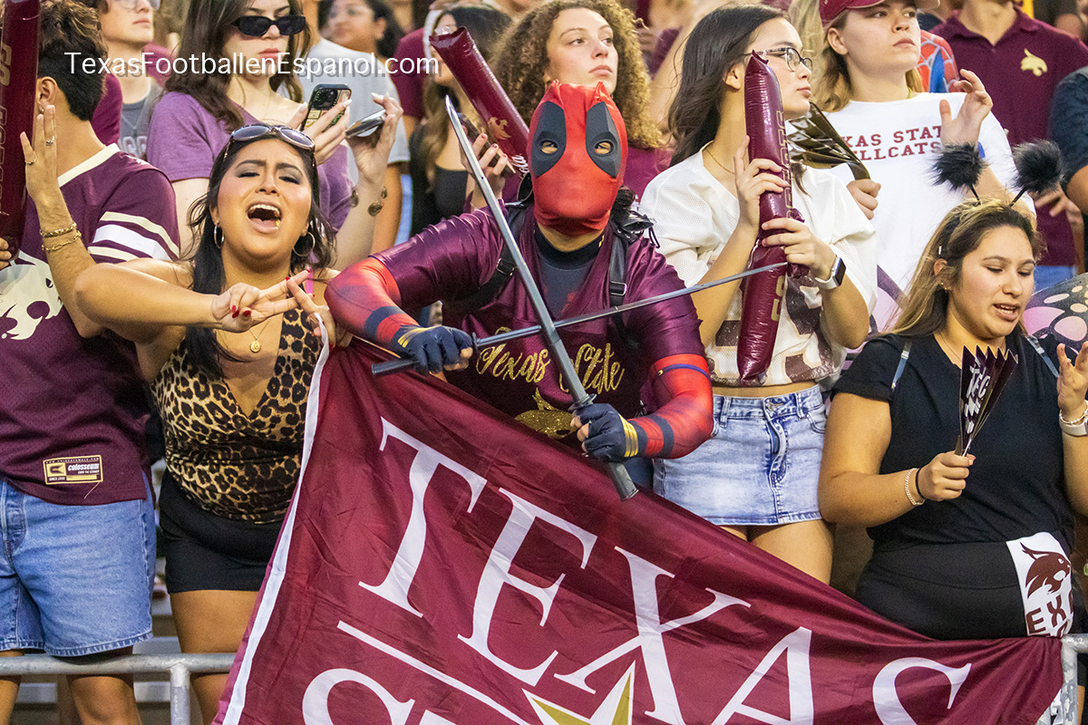 The Texas State Bobcats thrilled their fans in a lively Halloween-themed setting at Bobcat Stadium on Tuesday night. With 16,831 in attendance, the stands were filled with costumes and colorful displays, adding to the electric game atmosphere. Unfortunately for Texas State, the night ended with a narrow loss as they fell to the Louisiana Ragin’ Cajuns, 23-17.