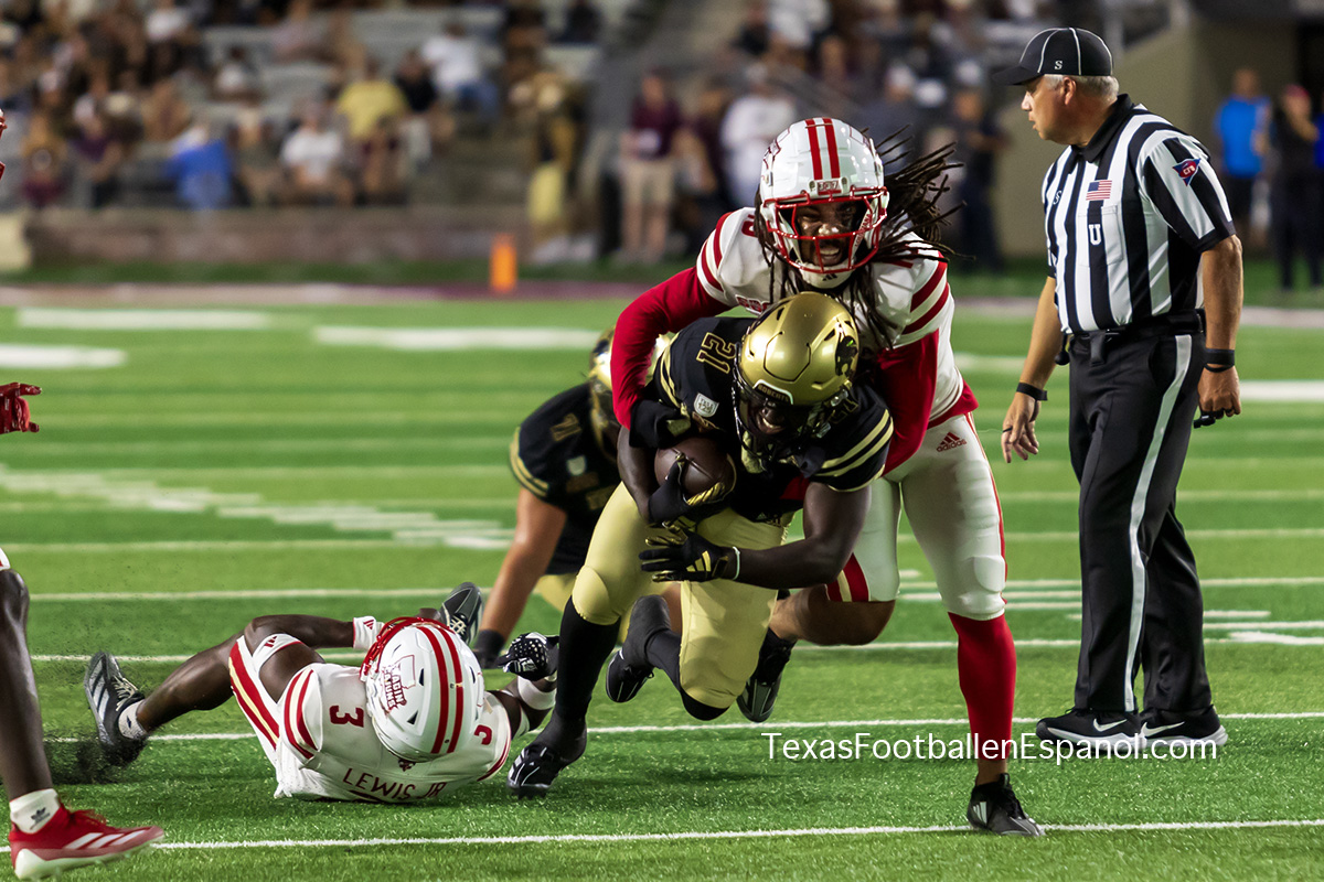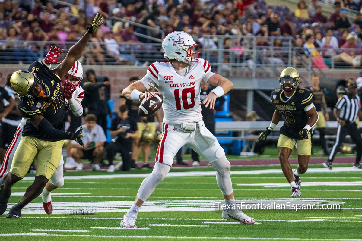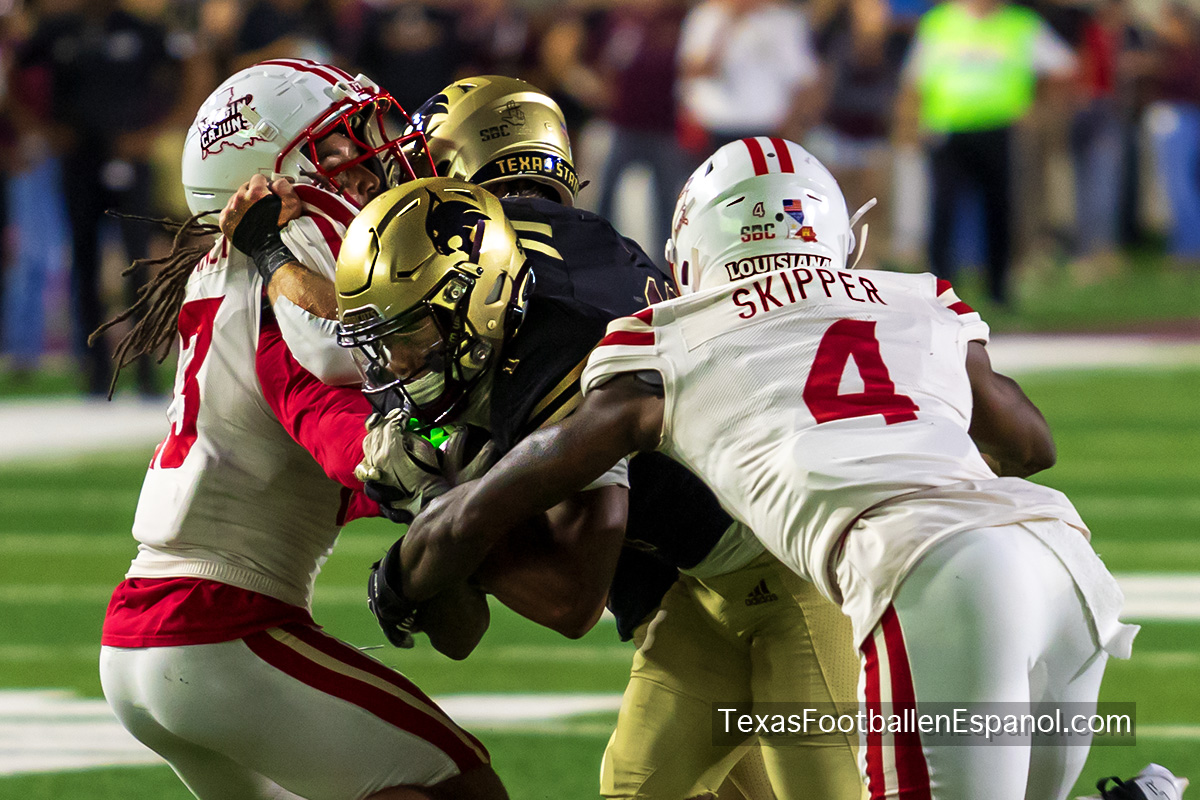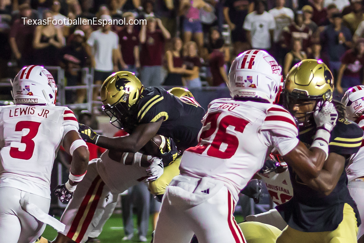Texas State quarterback Jordan McCloud threw 12-18 for 88 yards facing a strong Cajun defense during the whole night with no touchdowns or interceptions, before RJ Martinez entered and contributed with 113 yards, one interception, and no touchdowns. The Bobcats ultimately totaled 201 passing yards across both quarterbacks, struggling to find the end zone through the air. However, the ground game was led by Ismail Mahdi, who rushed for 82 yards and a touchdown, supported by a balanced effort from the backfield, but it wasn’t enough to overcome the Cajuns, who came away with the win on the road.
