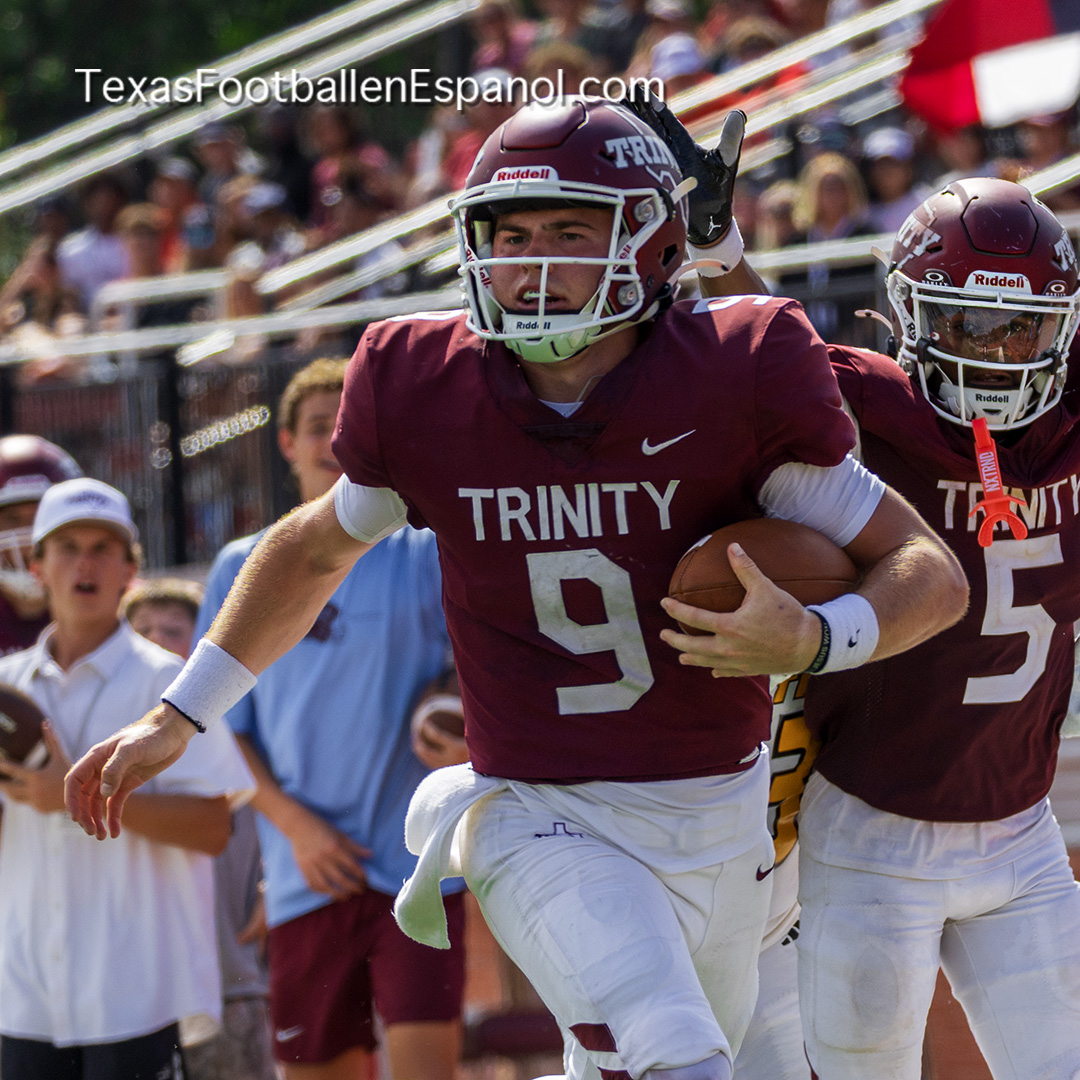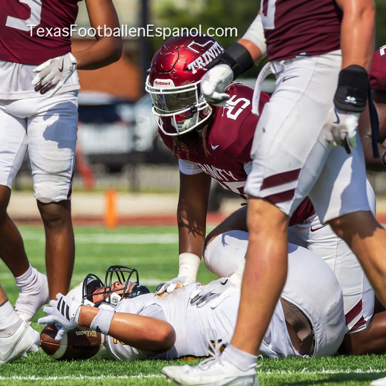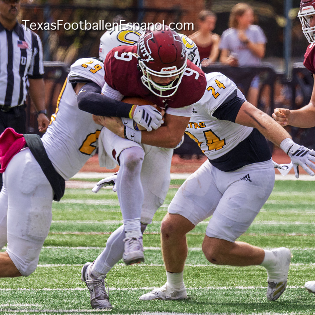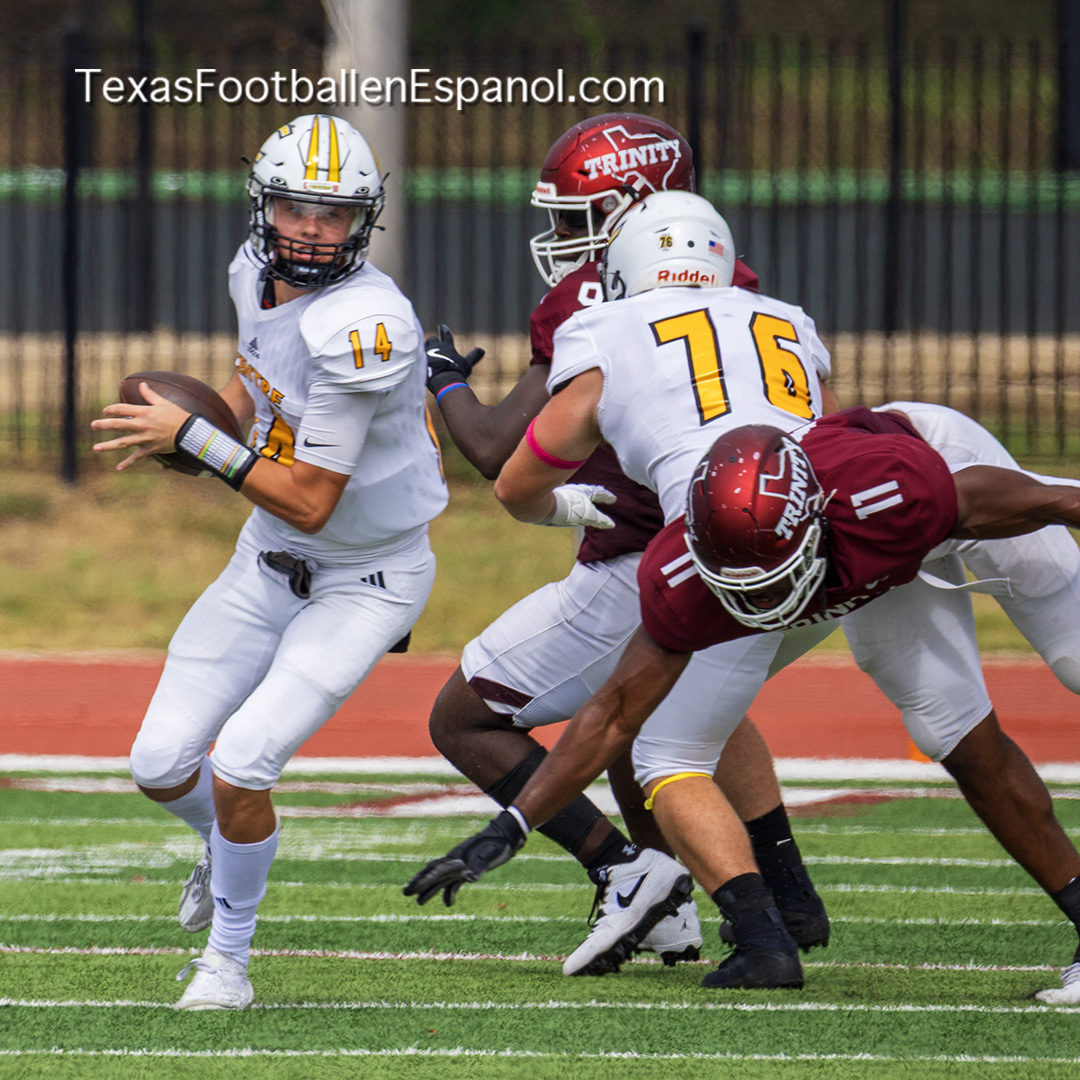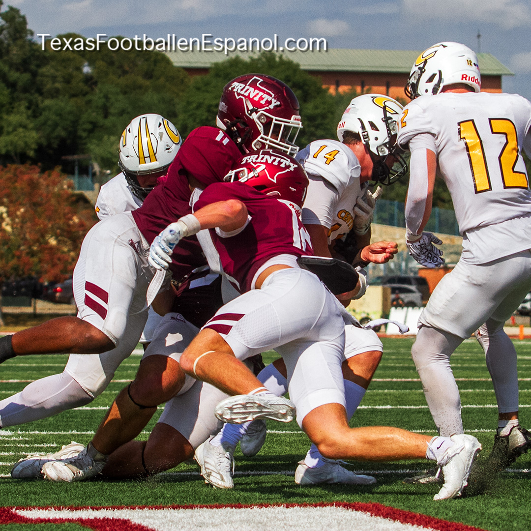 Trinity put up 389 total yards. This included a bruising 224 on the ground. They held Centre to just 210 total yards — and only 27 rushing.